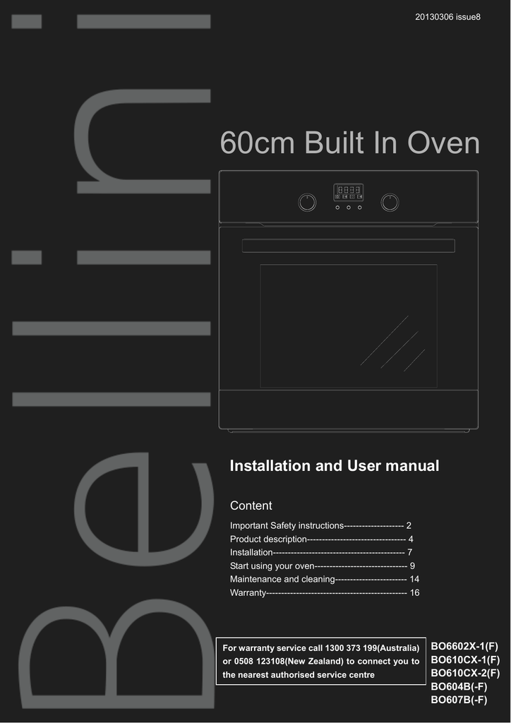 User manual Bellini BOM609G (English 31 pages) Bellini Wall Oven Manual This manual explains the proper installation and use of your oven, please read it carefully before using even if you are familiar with the product. To explore the full range of bellini ovens, refer to the comprehensive user manual available with each oven purchase. This manual explains the proper installation and use of your oven, please read it carefully before. Bellini Wall Oven Manual.