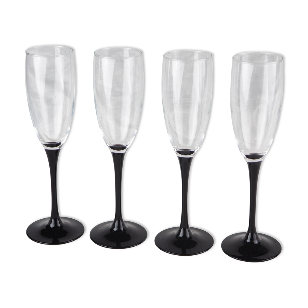 Set de 4 flutes à champagne à pied noir cristal d'Arques, Luminarc