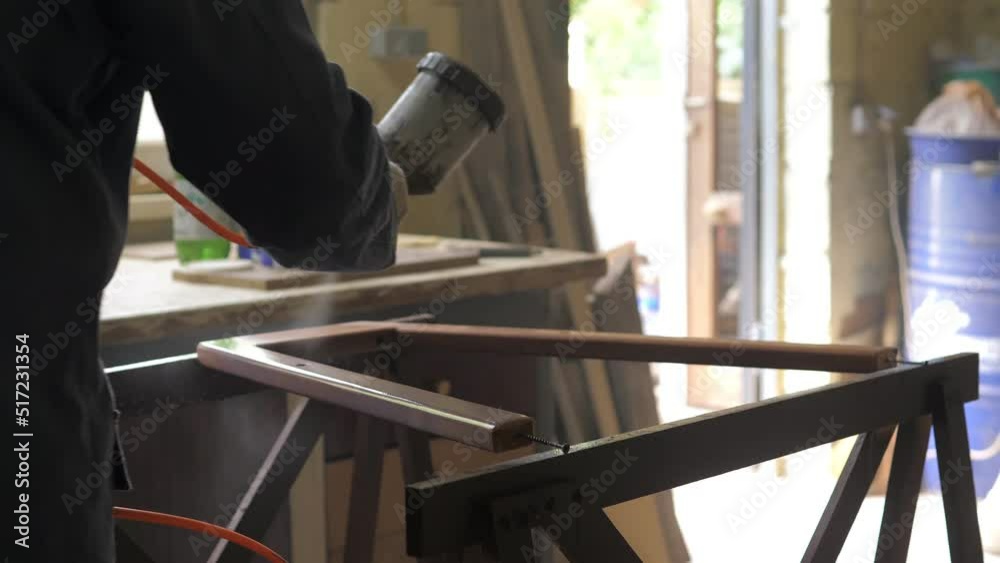 specialist using a spray gun sprays adhesive composition Stock ビデオ How To Apply Varnish With Spray Gun Learn here how best to proceed when spraying varnish, what you should look out for, why it's worth spraying varnishes. We show you when to use polyurethane, varnish, and spar varnish. Have you decided to spray varnishes with the wagner paint spray systems? 2nd pass go against the grain, apply about 40%. How to spray varnishes with our paint spray. How To Apply Varnish With Spray Gun.