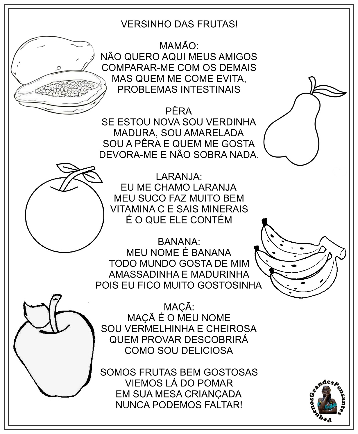 Pequenos Grandes Pensantes. Versinho das Frutas Semana da Boa