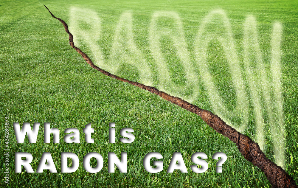What is radon gas? Concept with a green mowed lawn with a diagonal