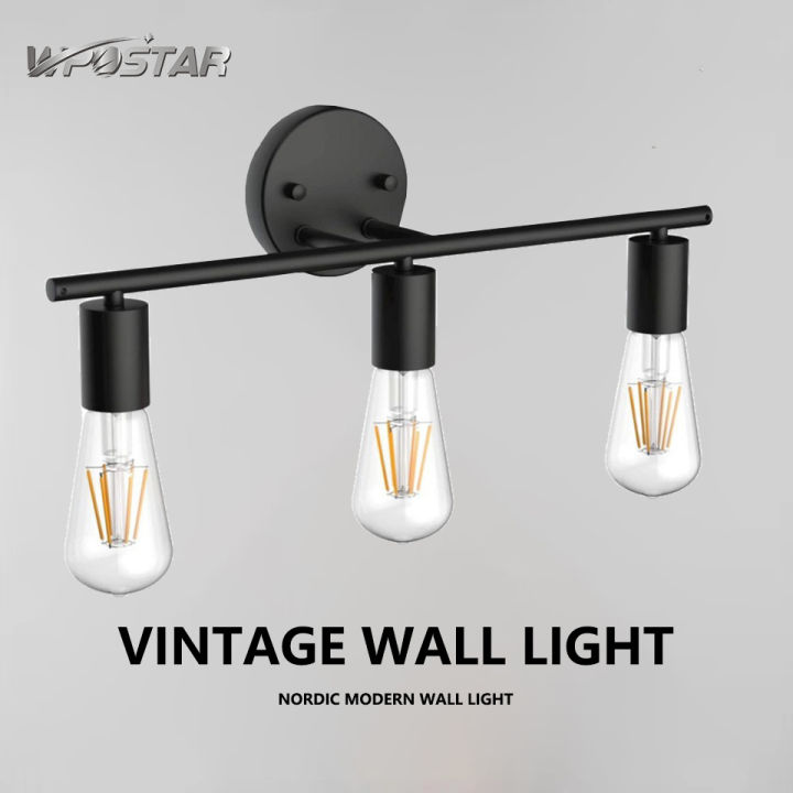 3 Heads Vintage Wall Lamp Bathroom Mirror Lamp Black Metal E27 Modern Wall Light Indoor Aisle