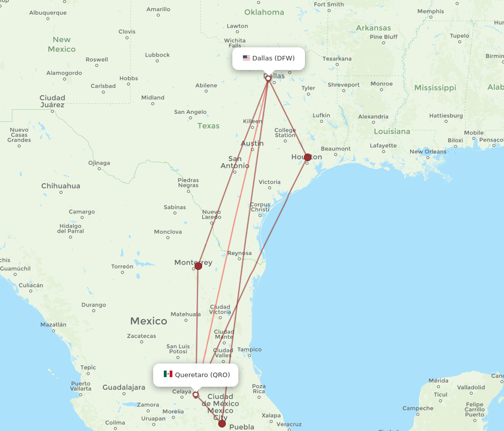 Flights from Queretaro to Dallas, QRO to DFW Flight Routes