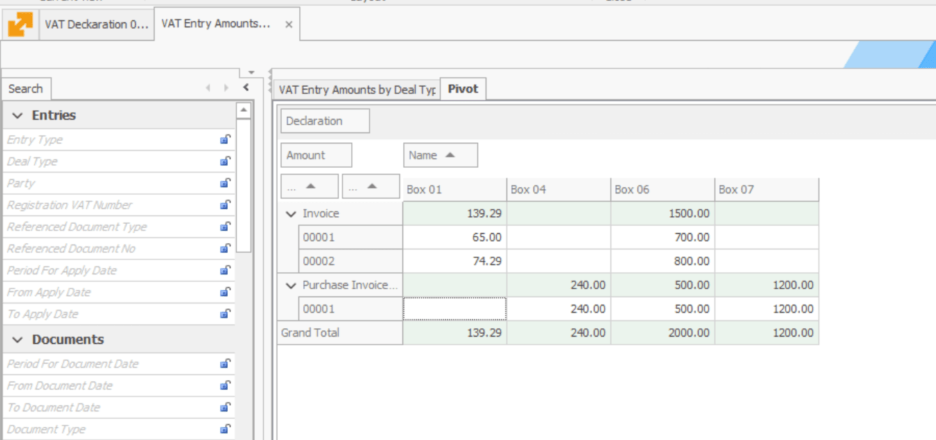 New navigator VAT Entry Amounts by Deal Types and VAT Boxes (v23