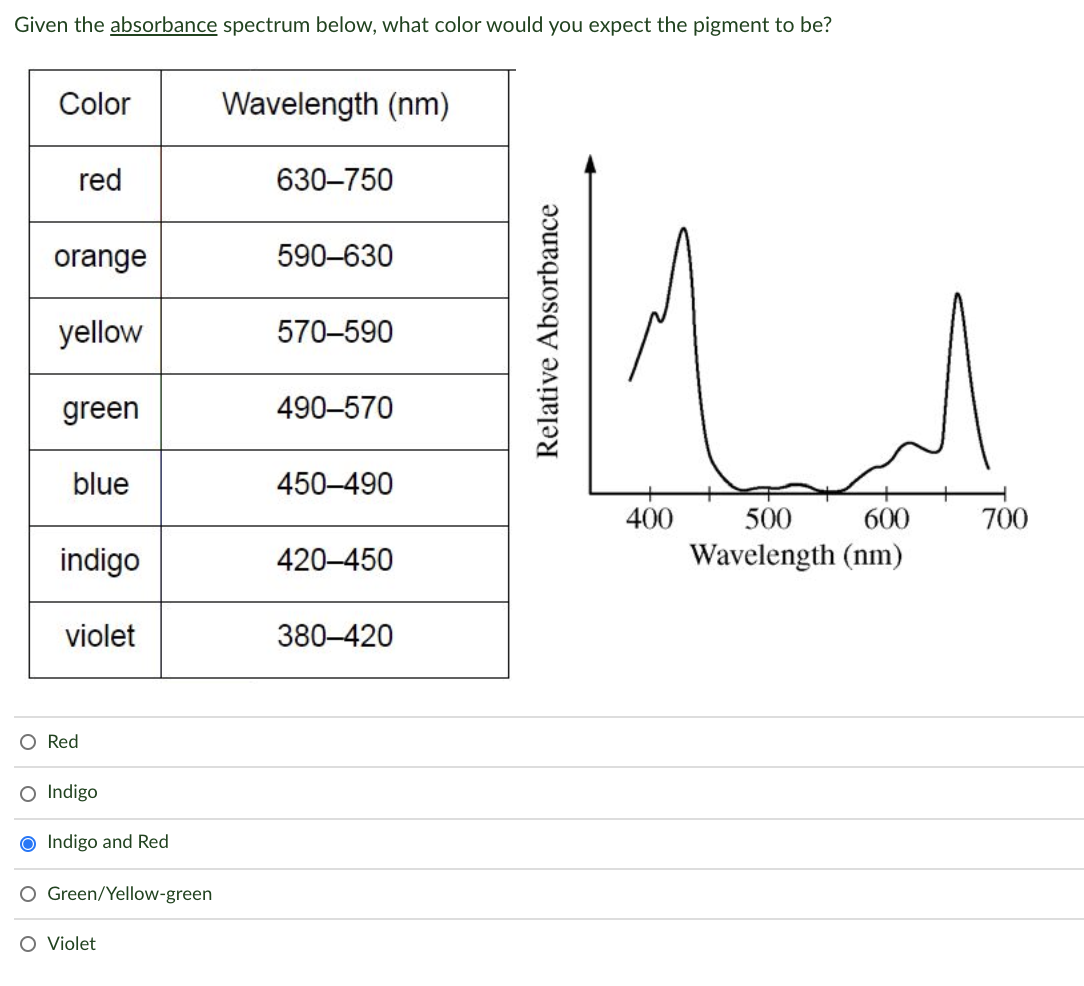 Solved Given the absorbance spectrum below, what color would