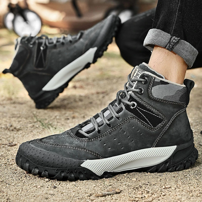 Men's Leather Outdoor Mountain Climbing Work Boots High Top Cotton