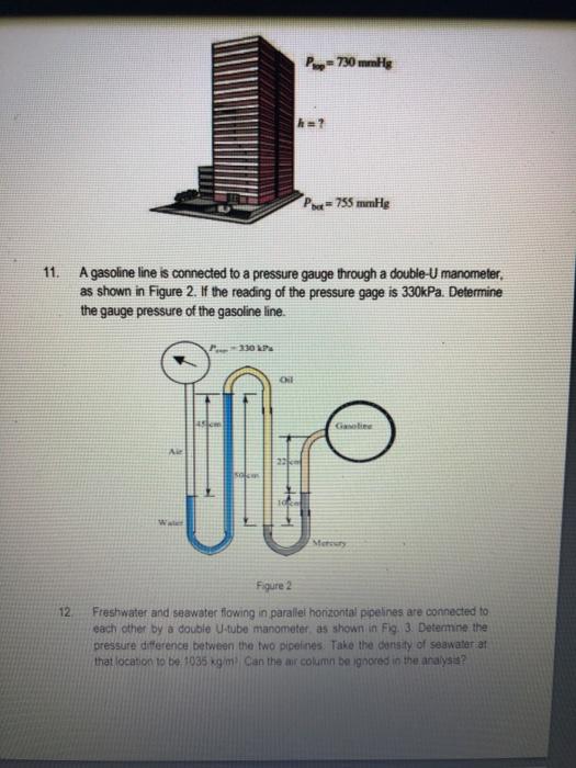 Solved 1. 2. A vacuum gage connected to a chamber reads 24