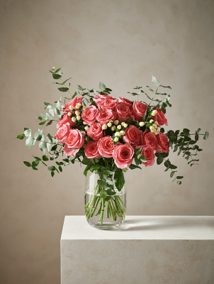A pretty pink and yellow soft mix with roses and spray carnations stem count: Buy home ranges online at george. Shop from our latest range in home. Stunning cerise gerberas complemented with soft pink roses and a large pink oriental lily, with natural tones of green hypericum and scented eucalytpus stem. Whatever the occasion, we've got a great selection of fresh flower bouquets and gifts to show them how much they mean to you, including next day. Fantastic quality, style and value. Fresh flowers is a new service we provide through george.com, that allows you to send flowers to someone for any occasion. 28 2x la lily yellow 6x i/m yellow rose 6x /m rose bi pink 5x spray carnation p. Shop from our latest home range. • natural • 40 x 8cm • dried natural botanicals • black round vase sold separately.