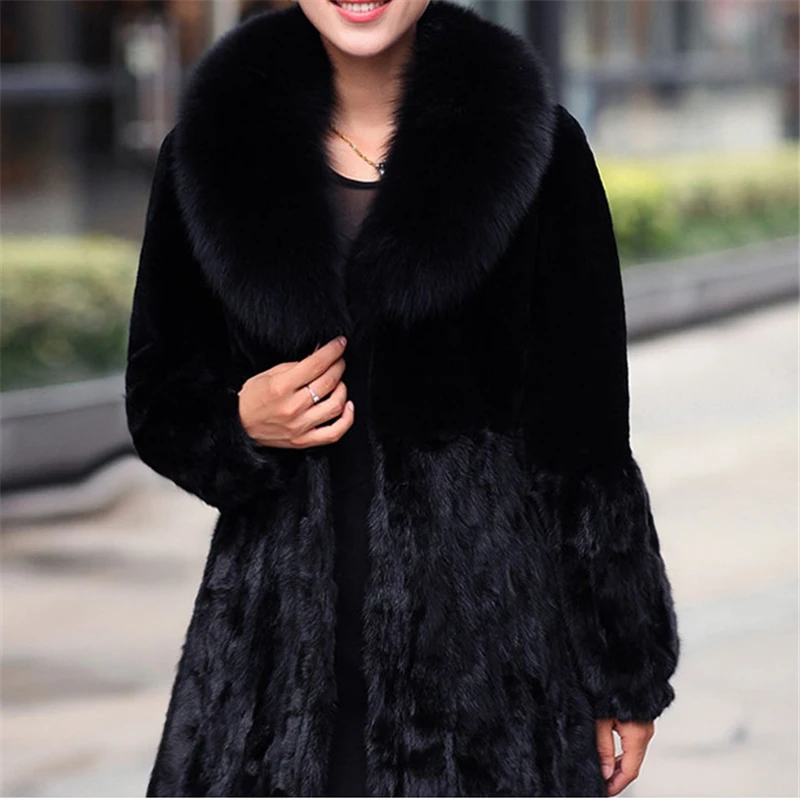 2016 Women Winter Hooded Fake Fur Coats Vintage Artificial Black Faux