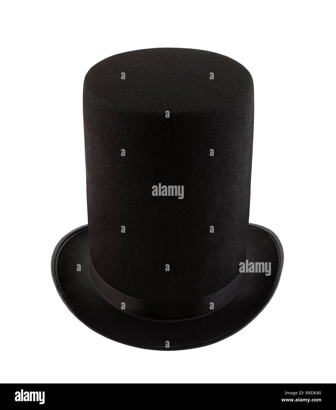 Extra tall black vintage top hat isolated on white background Stock