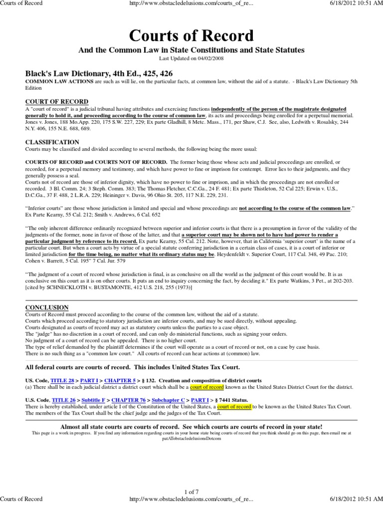 Courts of Record PDF Jurisdiction Supreme Courts