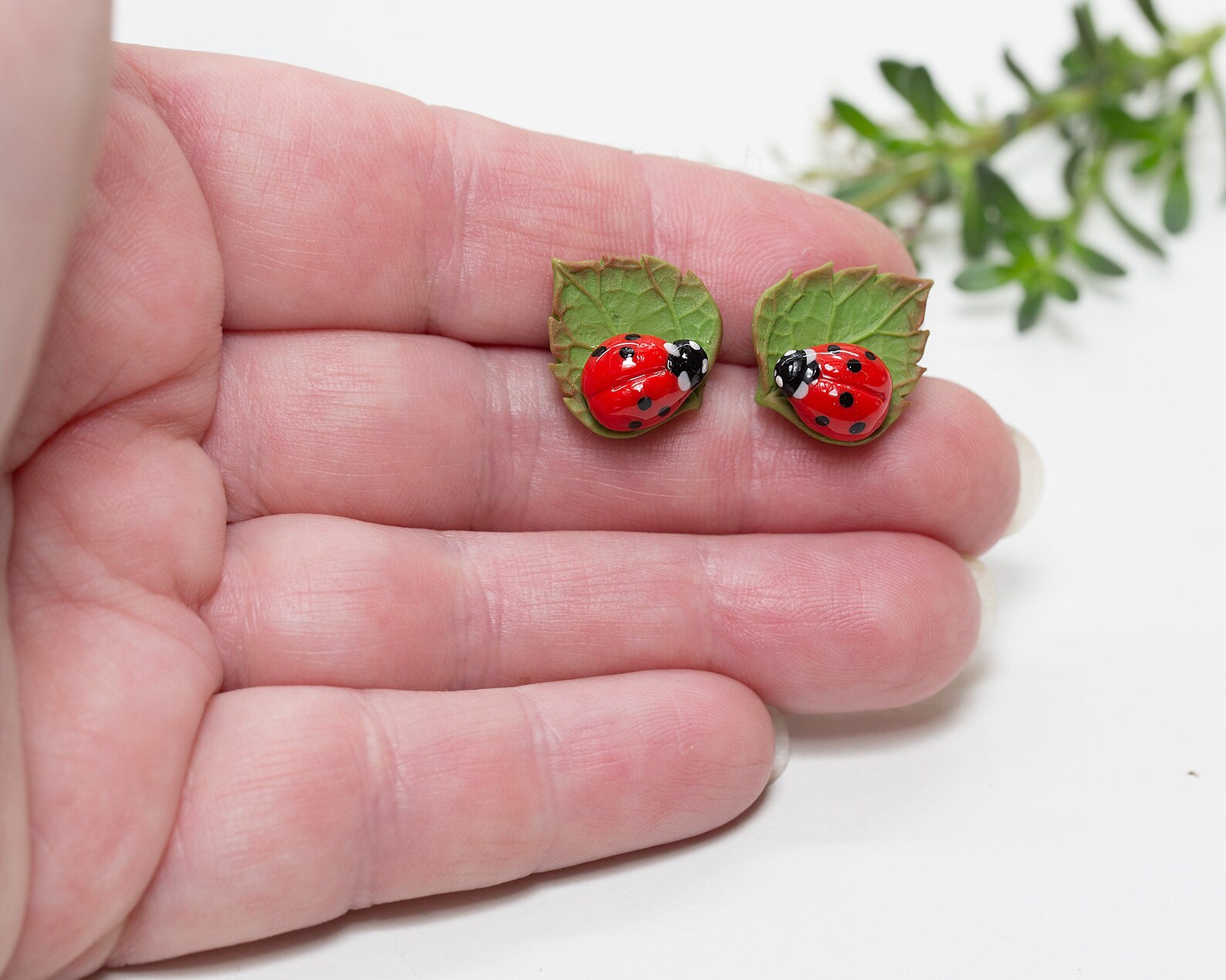 Ladybug on Leaf Jewelry Set. Gift for Girl. Polymer Clay Etsy