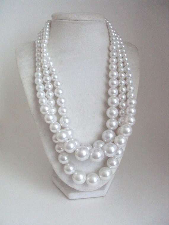 Chunky White Pearl Necklace Multi Strand Statement Necklace