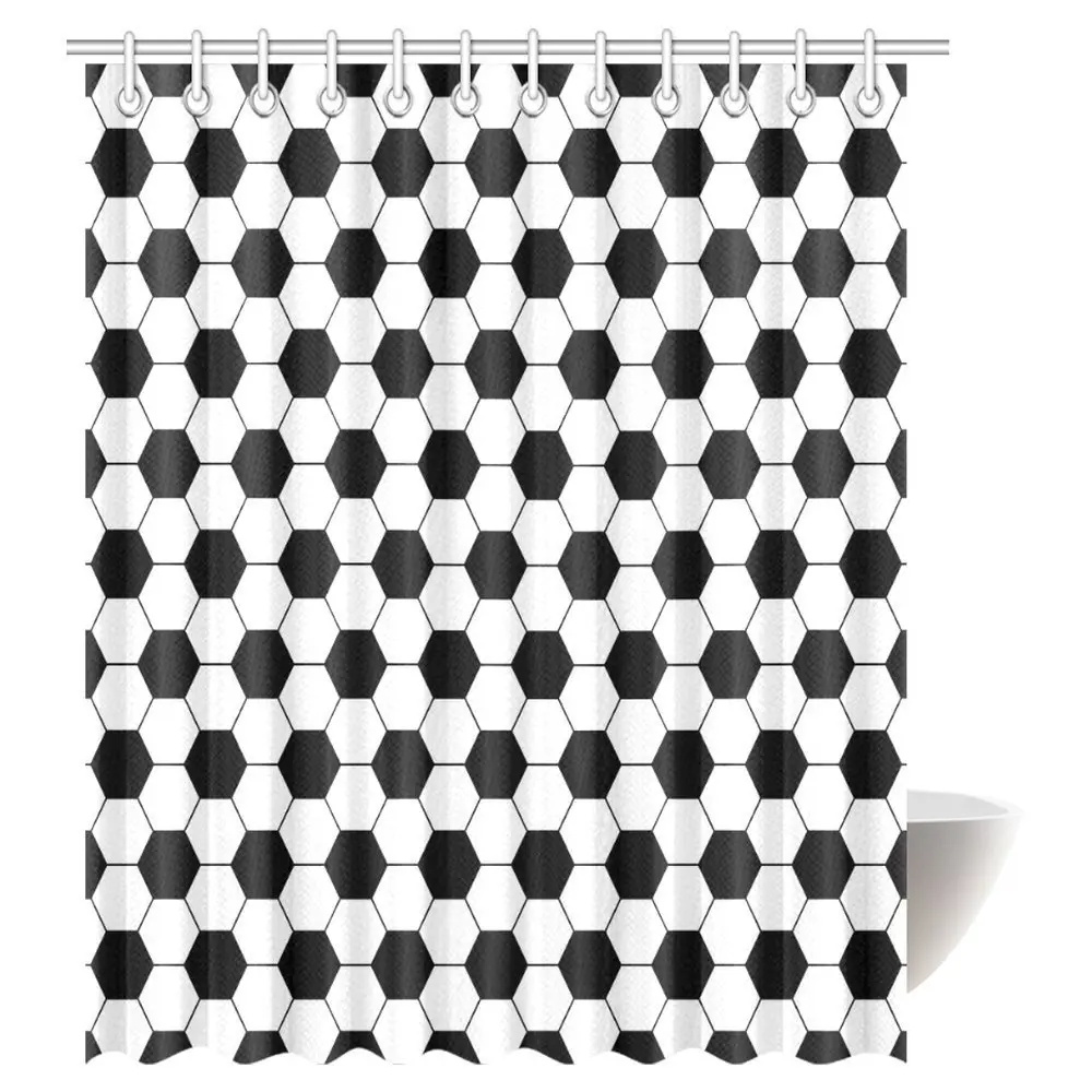Aplysia Sports Decor Shower Curtain Black and White Soccer Ball Pattern