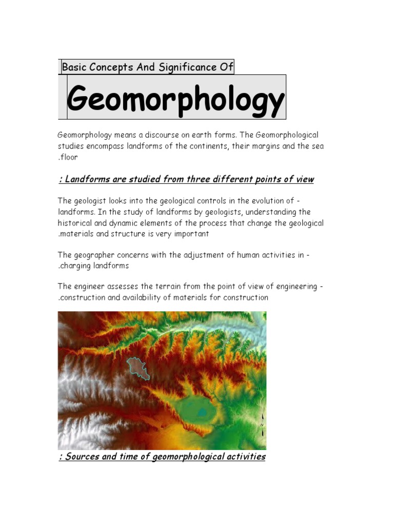 Basic Concepts and Significance of Geomorphology PDF Geomorphology