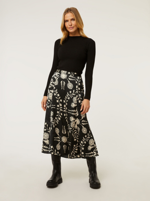 Black Floral Printed Midi Skirt Women at ASDA