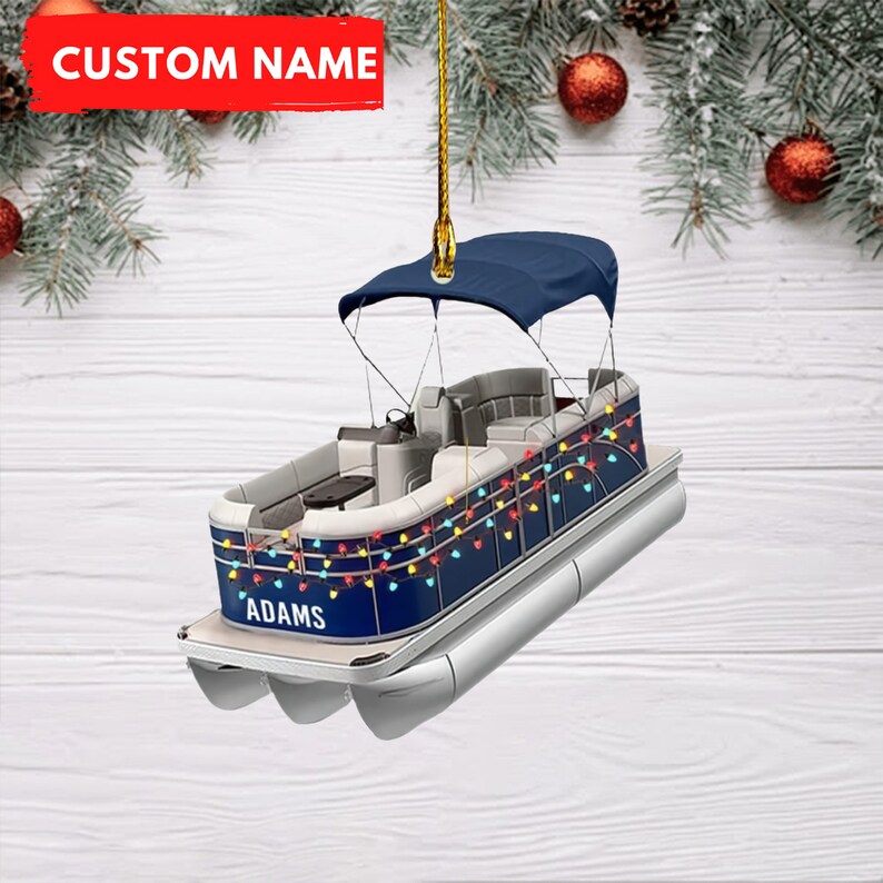 Personalized Pontoon Boat Ornament, Pontoon Boat Christmas Ornament
