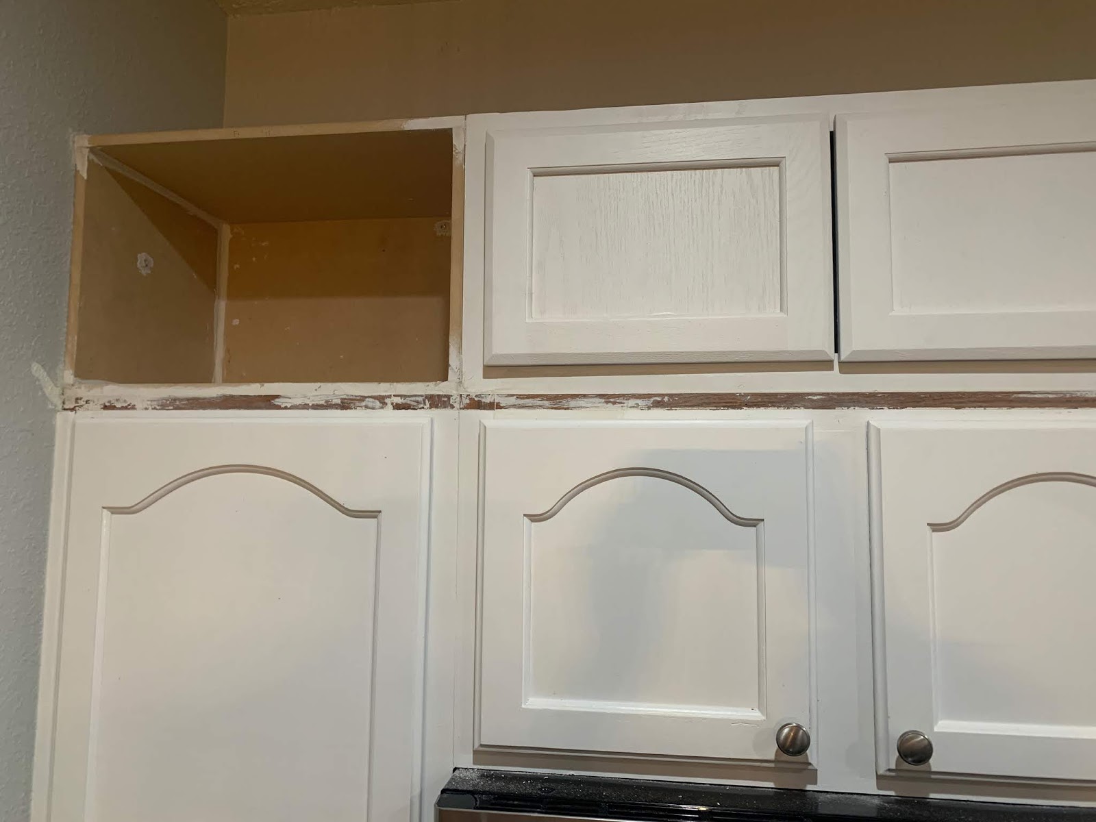 Emily Burn DIY Stacked Extending our Kitchen to How To Attach Stacked Cabinets You can add doors for extra storage space, or leave them open like i did to. If you’ve decided to remodel your kitchen, you don’t have to replace your cabinetry to have a double stacked design. Taller upper cabinets give you a custom look, and with this tutorial you can add them for a lot less! Install a spacer at. How To Attach Stacked Cabinets.