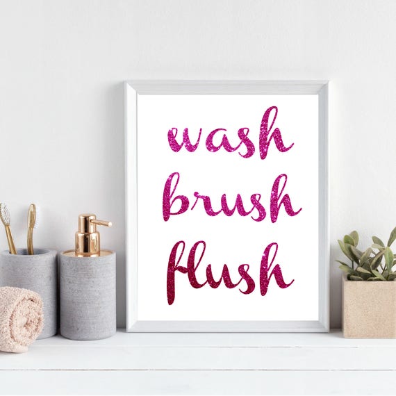 Wash Brush Flush Pink Glitter Bathroom Decor Wall Etsy