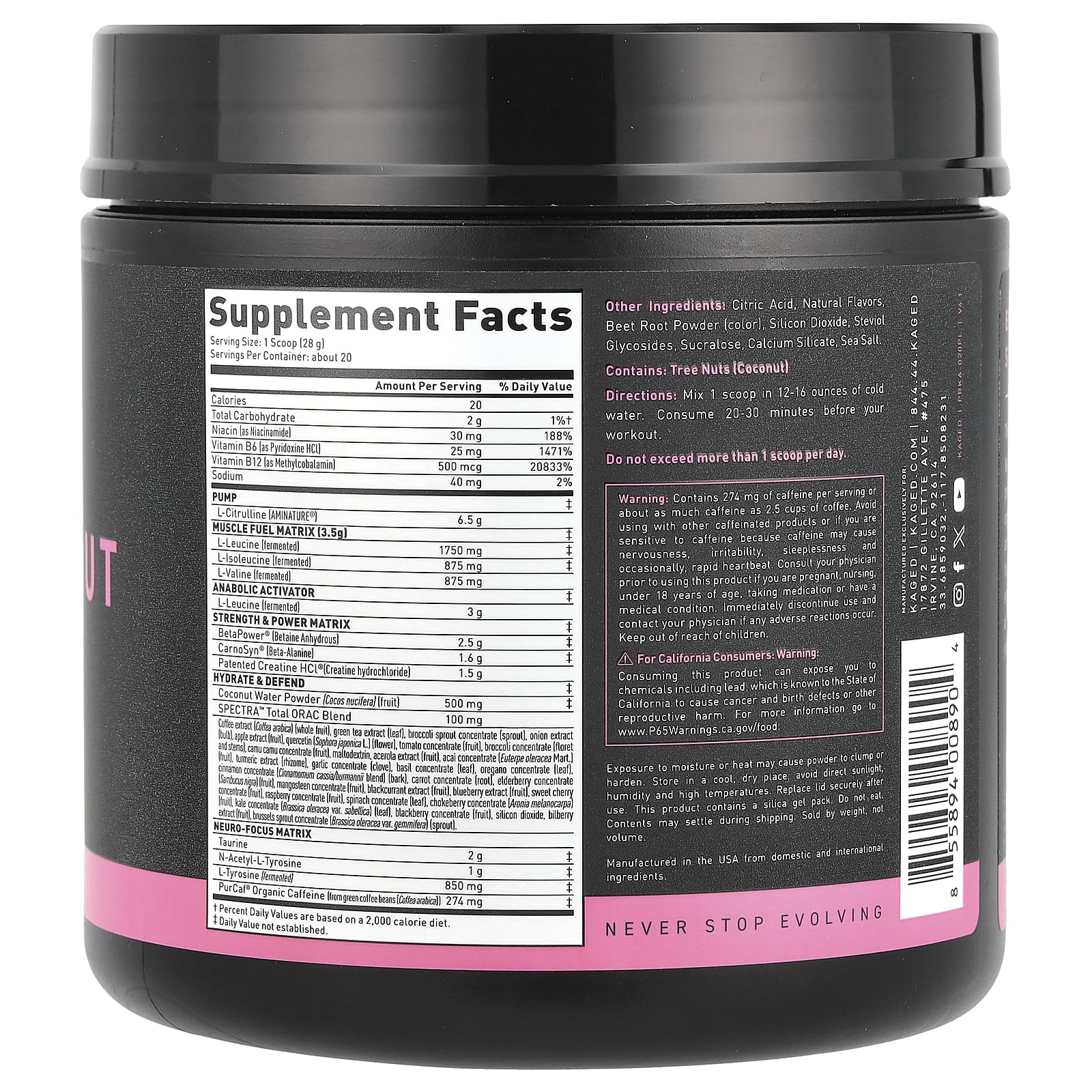 Kaged, PreWorkout, Pink Lemonade, 19.8 oz (560 g)