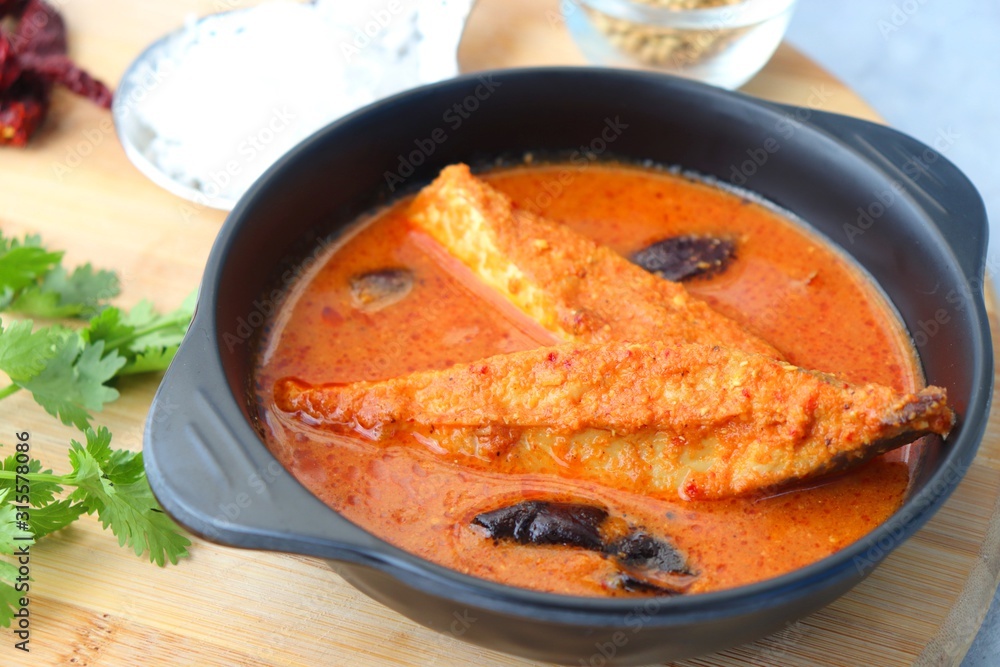 Goa Food Indian Traditional Goan Pomfret or butter fish curry. Hot and spicy homemade fish