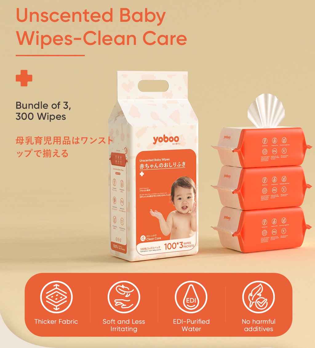 [NEW] yoboo Unscented Baby WipesClean Care YB0047 (100 Sheets *3