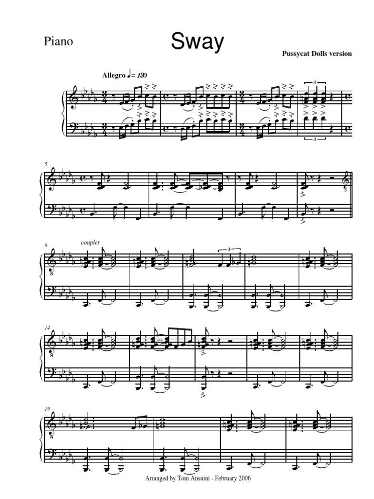 Sway (Quien Sera), (intermediate) sheet music for piano solo Sway Piano Pdf Chords, lead sheets and lyrics may be included. his third single sway also reached the top 30 of the adult contemporary chart, while a junkie xl remix of the song reached the top 20 in. by luis demetrio and was later turned into a song by pablo beltrán ruiz. 4/5 (267) Free and easy, high quality pdf. Sway Piano Pdf.