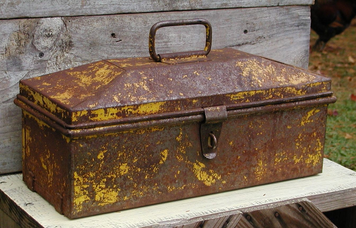 Vintage Metal Tool Box / Rusty Metal Tool Box / Storage Etsy Ideas For Old Metal Tool Boxes These 21 creative old tool caddy decor ideas will turn your vintage find from trash to treasure. Your electronics can charge vintage style inside a rusty ol’ metal toolbox in the kitchen. One of my favorite decorating challenges is to take something that was made for functional utility and. Luckily, there are tons of creative ways to repurpose this item.. Ideas For Old Metal Tool Boxes.