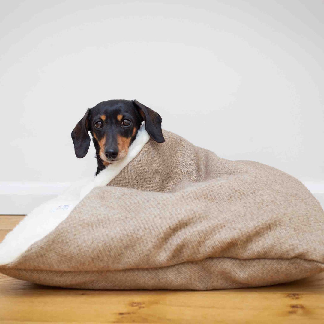 Stone Herringbone Tweed Doggy Den Bed Personalised Dog Bed Etsy
