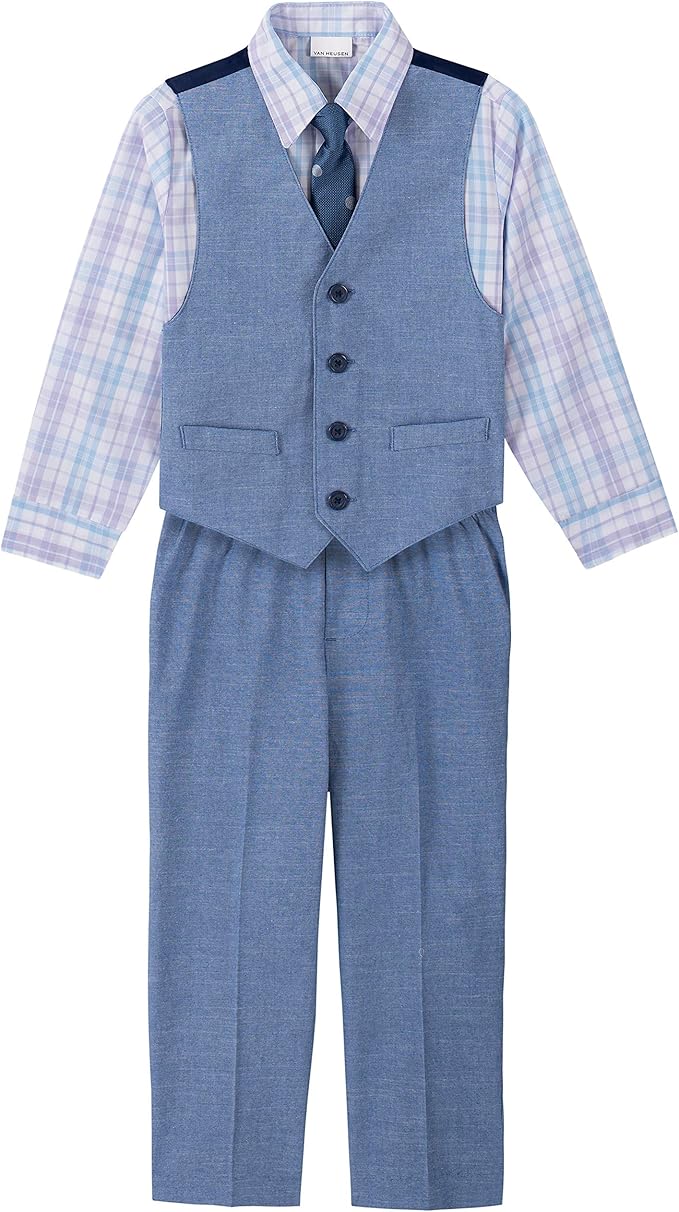 Van Heusen Boys' 4Piece Formal Suit Set, Vest, Pants, Collared Dress Van Heusen Boys' 4-Piece Formal Suit Vest Set Formal occasions call for this boys' van heusen vest set. Full elastic waistband, front crease; Van Heusen Boys' 4-Piece Formal Suit Vest Set.