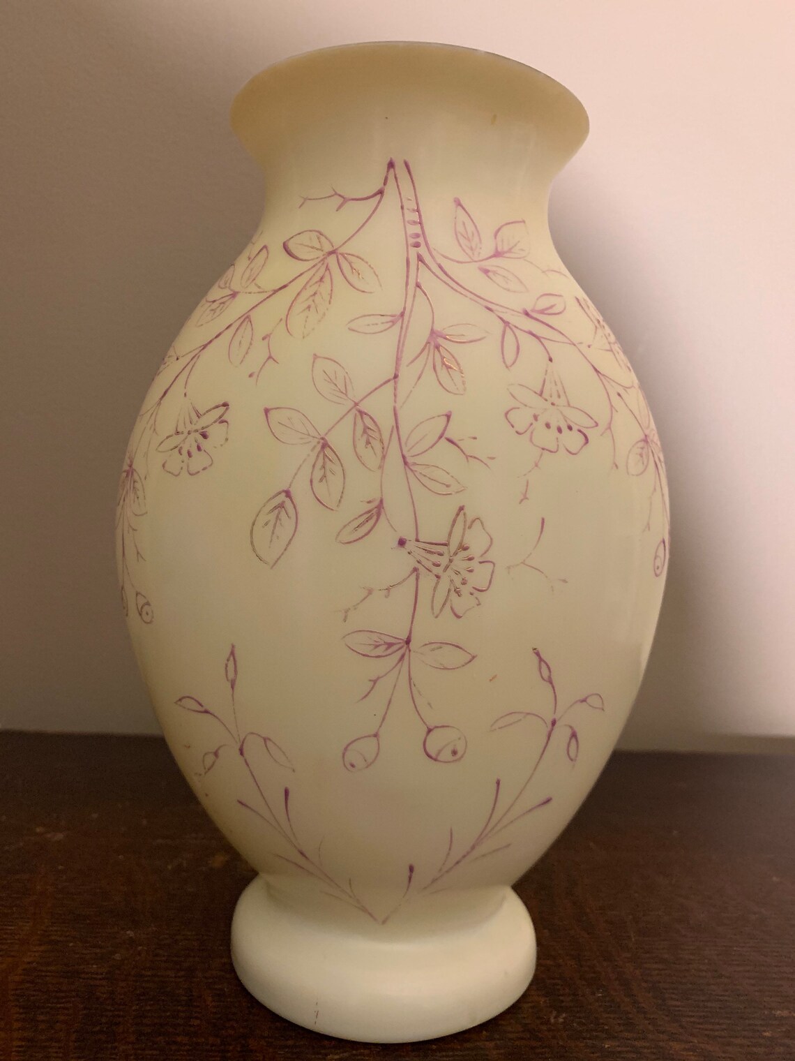 Vintage Hand Blown Satin Milk Glass Vase with Hand Painted Etsy