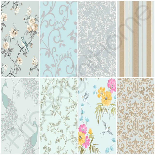 FINE DECOR DUCK Egg Wallpaper Blue Floral Stripe Damask Birds £12.80