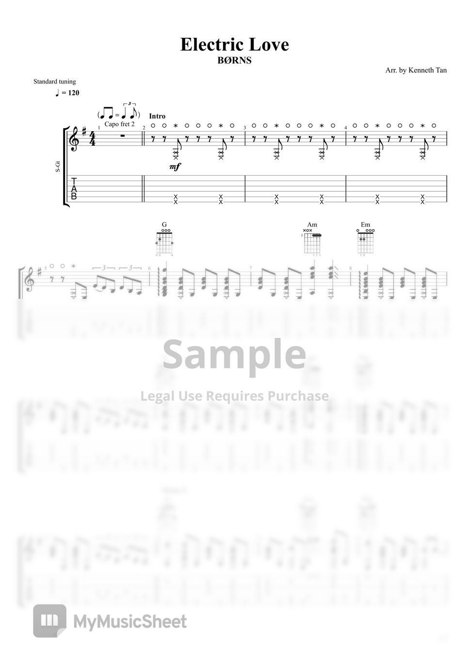 BØRNS Fingerstyle Guitar Electric Love Sheets by Acoustic