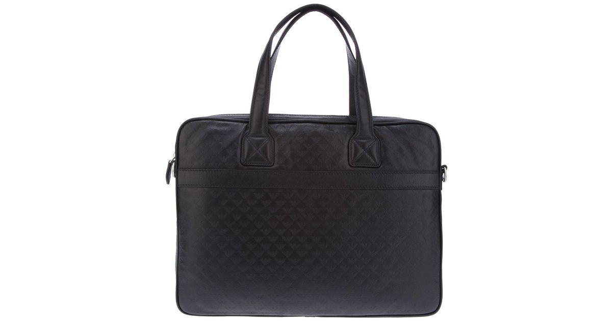 Emporio Armani Logo Embossed Laptop Bag in Black for Men Lyst