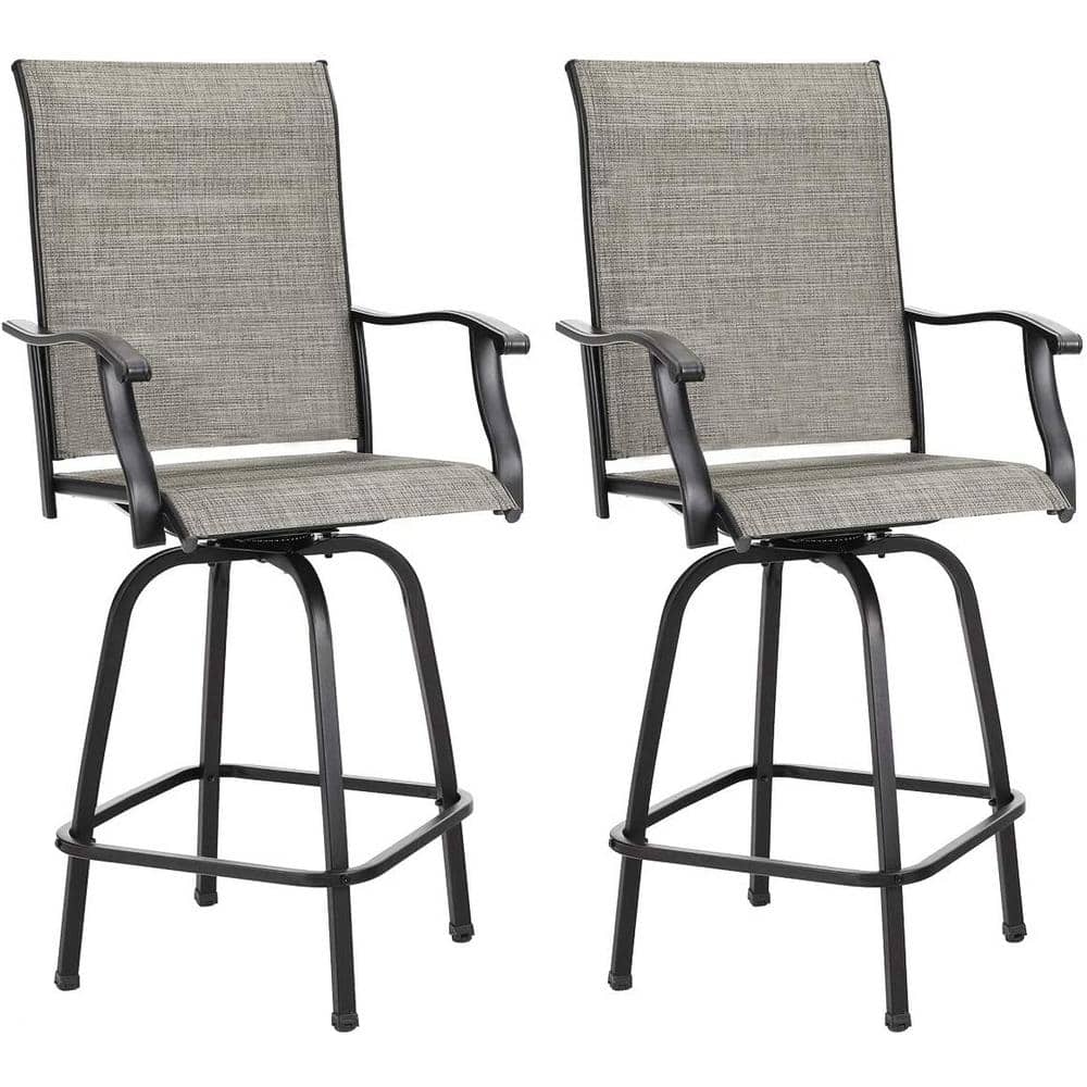 Kingdely Swivel Metal Frame Gray Outdoor Bar Stools Height Patio Garden