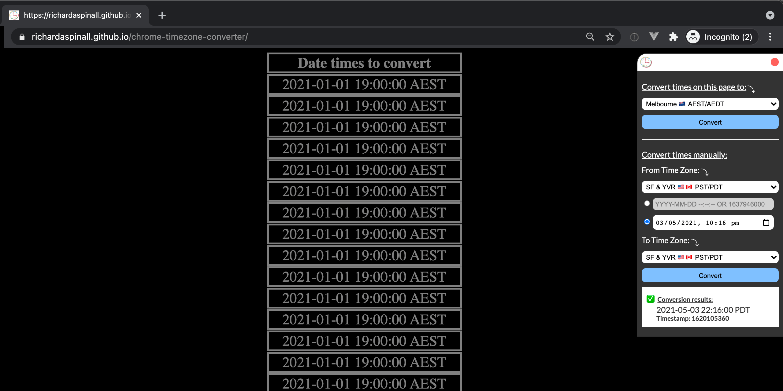 GitHub richardaspinall/timezoneconverter Chrome extension for