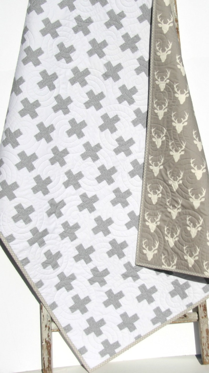 SALE Modern Crib Bedding Quilts Gray Buck Blanket Buck Baby Etsy