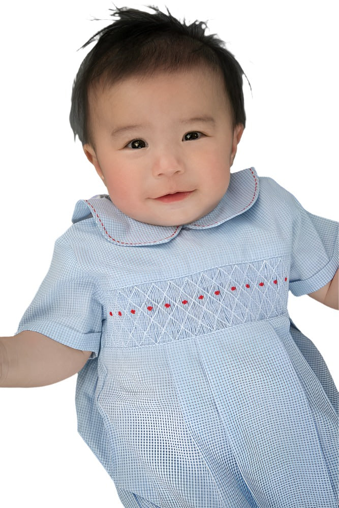 Wholesale Smocked Running Stitch Baby Boy Bubble Romper