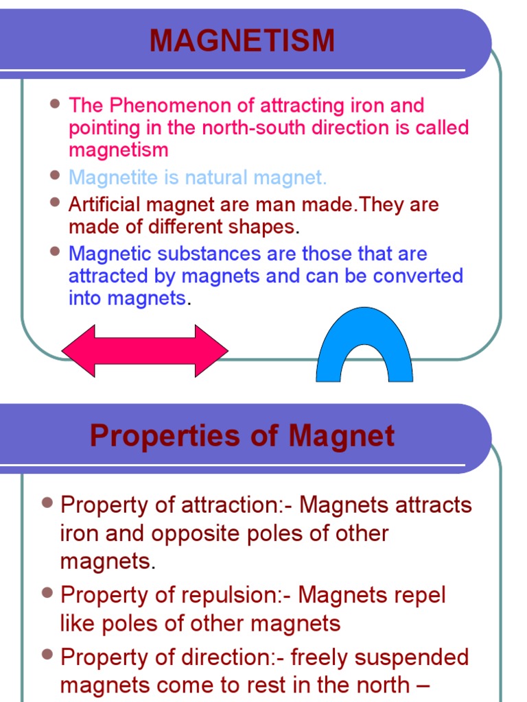 PowerPoint Slides LearnPick India Magnetism Theory Definition A changing magnetic field generates an electric field (faraday’s law);. This explains why when a magnet is broken, all of its. Magnetism is a force of nature produced by moving electric charges. Any charged spinning object is a magnet. It can be an electric current in a conductor or charged particles moving. Electric currents and the magnetic moments of elementary.. Magnetism Theory Definition.
