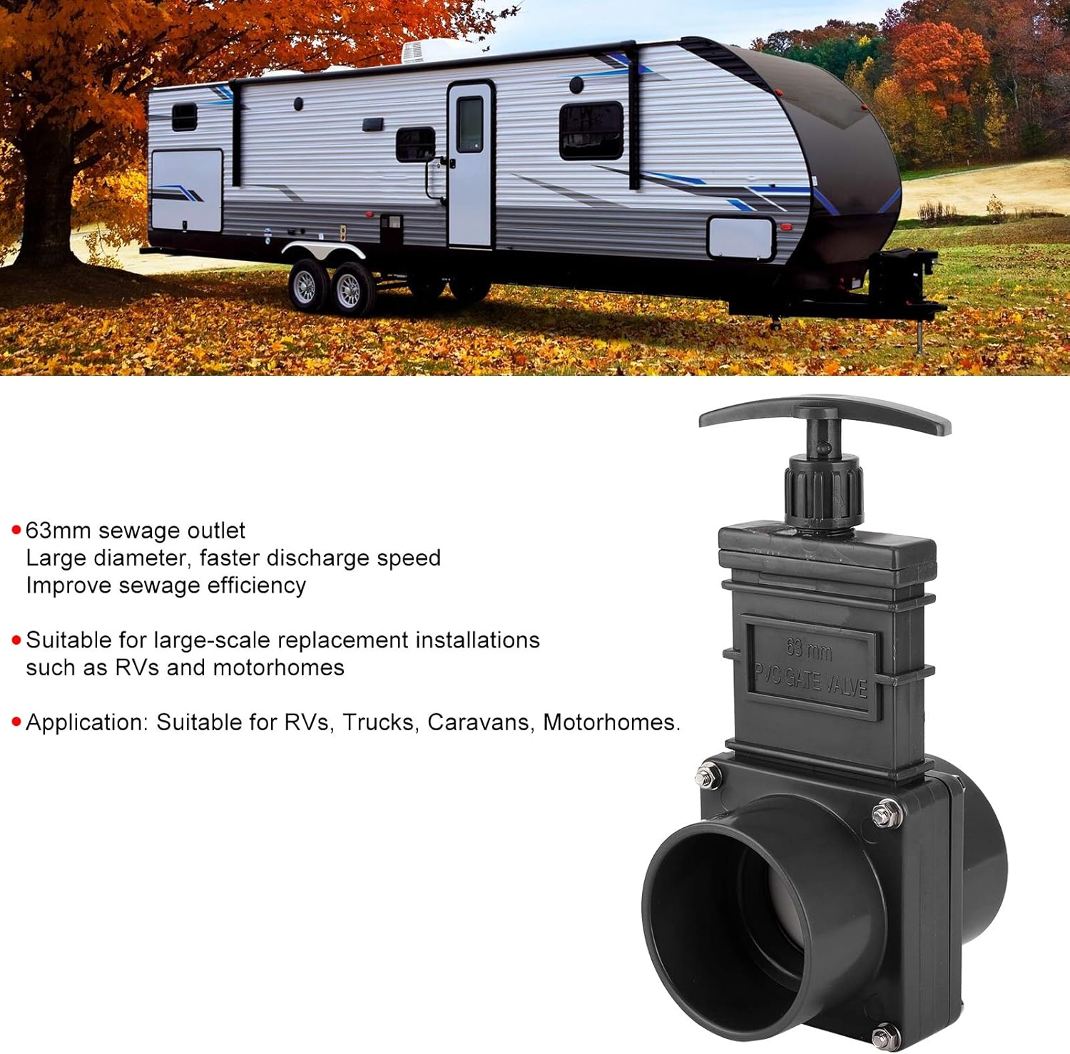 Black Camper Trailer 63mm/2.5inch Rv Sewage Valve Campsite Sewage
