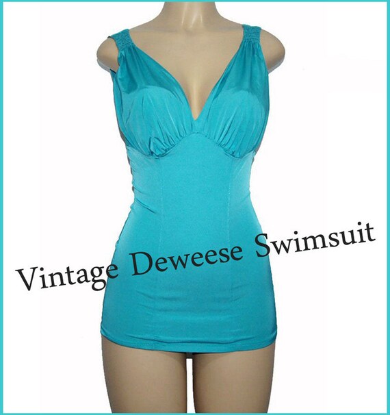 Vintage Swimsuit DEWEESE DESIGN Aqua Blue Green by ChiffonJane