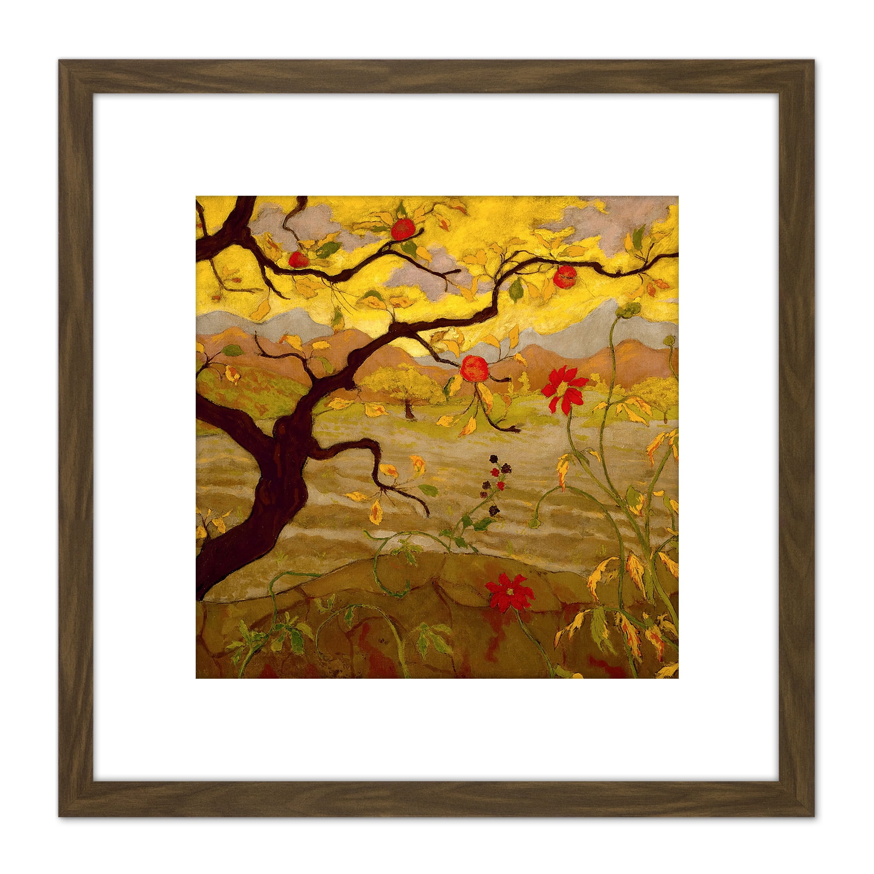 Ranson Apple Tree Red Fruit Painting 8X8 Inch Square Wooden Framed Wall