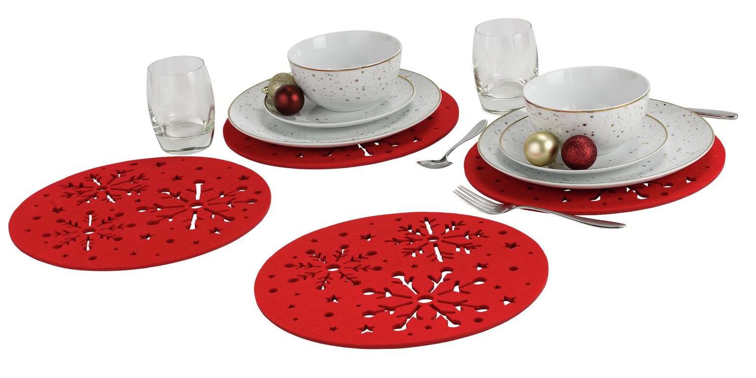 Sainsbury's Home Set of 4 Red Felt Placemats Reviews Placemats Sainsburys Top up your trolley and check out the rest of our homeware and outdoor range too. Explore a huge range of tableware which is perfect for any occasion. And placemats and coasters add a touch of elegance to your dining table. Bringing added charm to the dinner table, browse our selection of stylish placemats and coasters from our tableware collection.. Placemats Sainsburys.