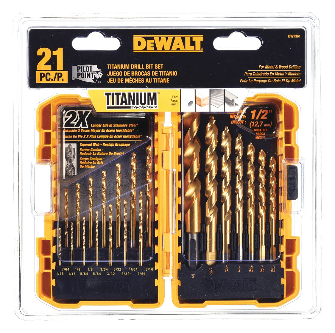 DEWALT Jobber Length Drill Set, Number of Drill Bits 21, 135