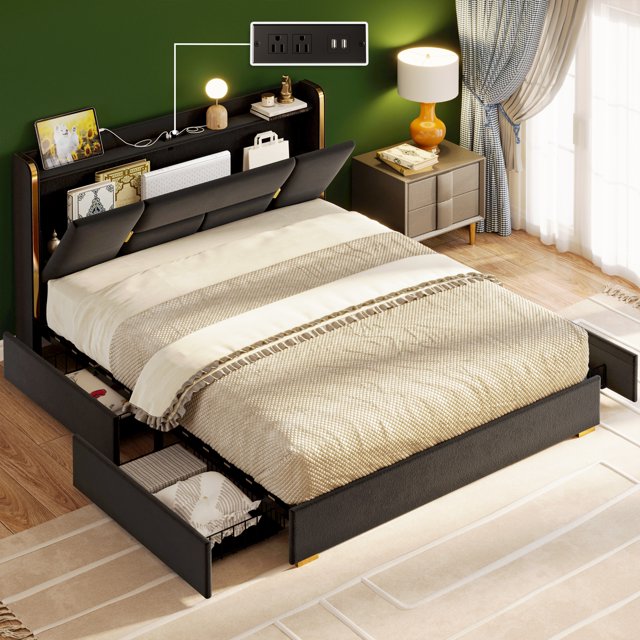 Amolife Queen Size Platform Bed Frame with Headboard and 4 Drawers Walmart Queen Bed Frame Platform When a bed frame doubles as. Shop for more bed frames available online at walmart.ca. Buy zinus 14in queen metal frame platform bed from walmart canada. buy paproos queen size bed frame, rustic wood platform bed with headboard, modern farmhouse style queen bed frame no. queen bed frame with four storage drawers. allewie queen size platform bed. Walmart Queen Bed Frame Platform.