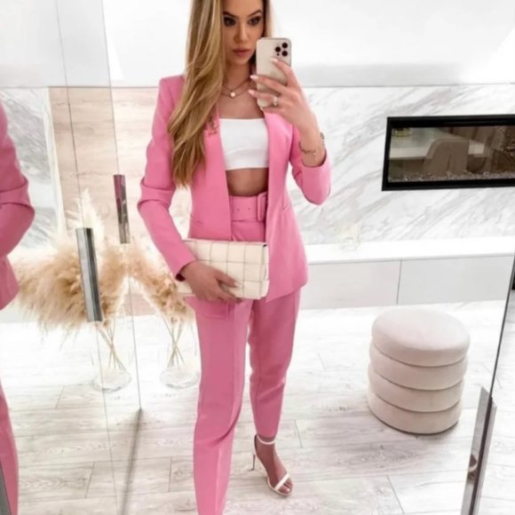 Zara Pants & Jumpsuits S L Zara Pink Blazer Set Poshmark