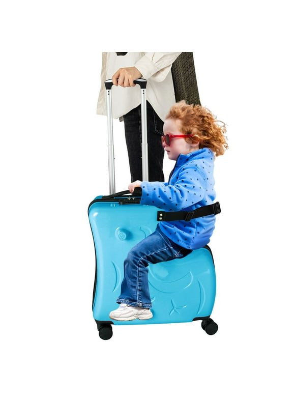 Review 22Inch Kid's Ride on Suitcase Hard Shell CarryOn Rolling Children's Ride On Trolley Suitcase The luggage is shaped so that a child comfortably sits on it, and there’s a handle that allows. The kids ride on luggage has a seat belt that can adjusted to the suitable position and protect the child when the child sits down. Check out our full range of kids luggage and suitcase, the perfect option for the ride on. Children's Ride On Trolley Suitcase.