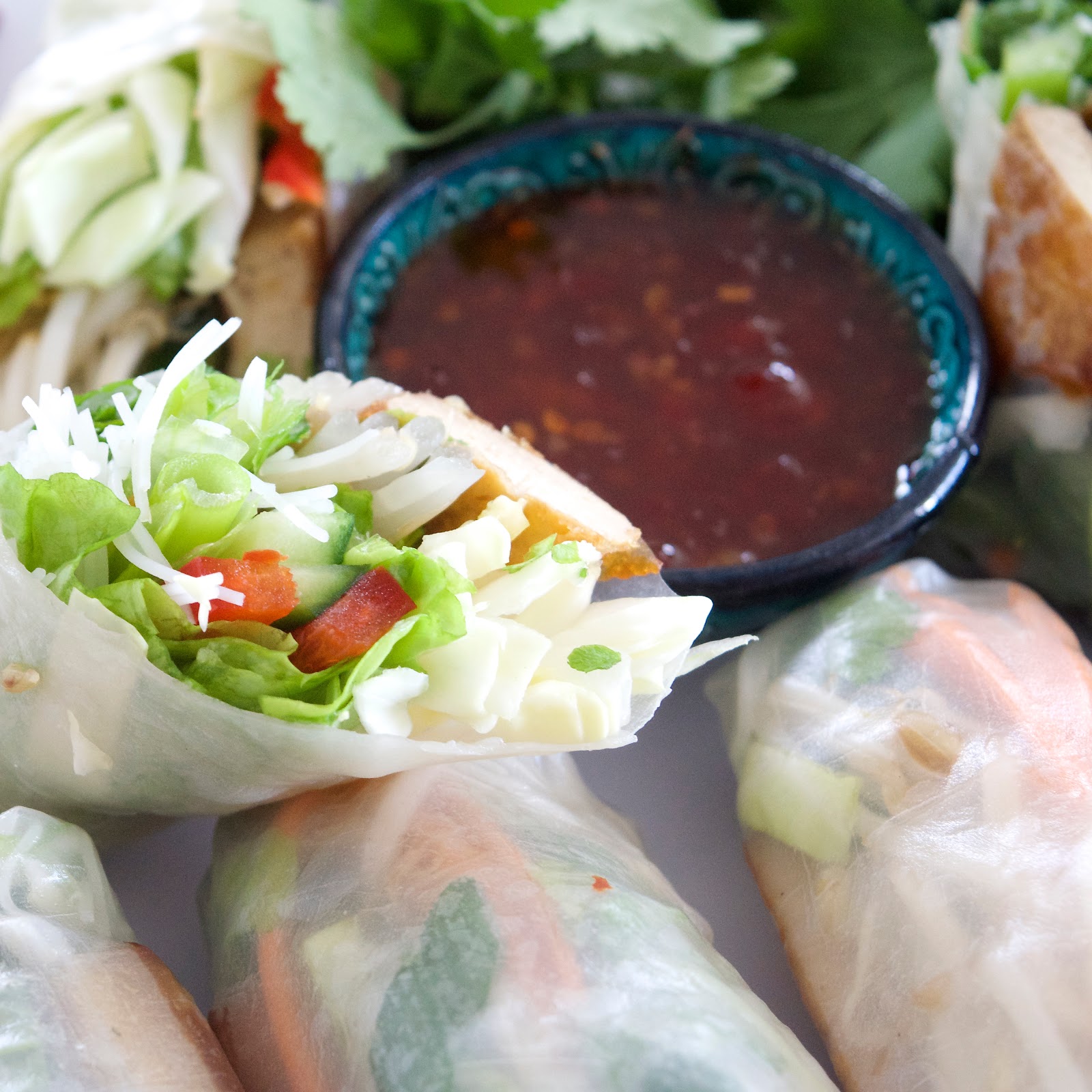 Tofu Rice Paper Rolls Learn how to make easy and healthy tofu rice paper rolls with a refined sugar free. These tofu spring rolls are made of marinated tofu, rice vermicelli noodles, fresh vegetables and herbs, wrapped in rice paper. The recipe given includes a version of my all time favourite dipping sauces. We love a combo of cucumber, mango and coriander with tofu.. Tofu Rice Paper Rolls.