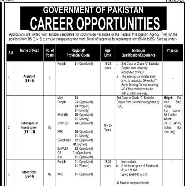 Latest FIA Jobs 2022 Federal Investigation Agency Latest Jobs 2022