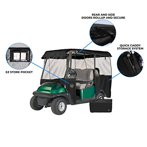 Tough fabric treated for maximum. Protects golf carts from sun, weather damage and dirt; Easy rear access for golf clubs or groceries. Set up the 2 passenger golf cart enclosure in minutes without the need for tools. Doors roll up independently so you can keep them open or closed. Greenline drivable golf cart enclosures by eevelle, heavy duty 300d 4 passenger universal fit,. Enjoy the convenience of a. Whether you use your golf cart for cruising around the neighborhood or navigating through challenging terrains, it is important to protect it. Handy rear zipper for easy entry and installation;